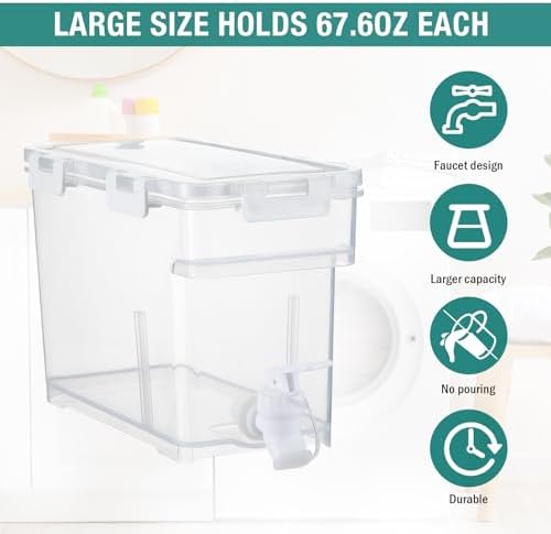 Quality and Reliable Material: our liquid detergent dispenser is made of quality PET plastic material, which is sturdy and strong, not easy to break or deform, reliable and safe to use; And the clear design keeps the capacity of the container visible, so you can see the amount of laundry detergent remaining, to facilitate timely replenishment