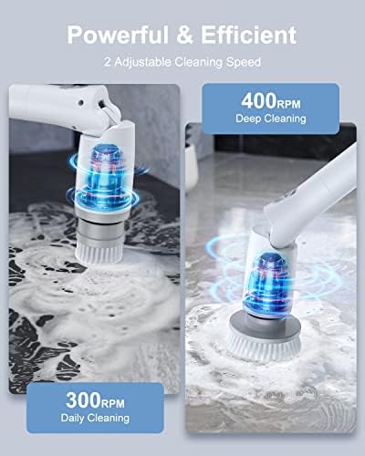 [𝐃𝐮𝐚𝐥 𝐒𝐩𝐞𝐞𝐝𝐬, 𝐏𝐨𝐰𝐞𝐫𝐟𝐮𝐥 & 𝐄𝐟𝐟𝐢𝐜𝐢𝐞𝐧𝐭 𝐒𝐩𝐢𝐧 𝐒𝐜𝐫𝐮𝐛𝐛𝐞𝐫] Unlike other power scrubbers that only have one speed, our electric shower scrubber has 2 adjustable spin speeds: 300RPM mode for daily cleaning, 400PRM mode for deep cleaning, superpower perfectly meet all your cleaning needs.