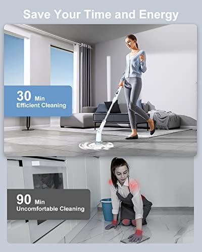 [𝟑 𝐀𝐝𝐣𝐮𝐬𝐭𝐚𝐛𝐥𝐞 𝐇𝐚𝐧𝐝𝐥𝐞 𝐋𝐞𝐧𝐠𝐭𝐡𝐬 & 𝐀𝐧𝐠𝐥𝐞𝐬] The electric power scrubber has an extendable handle, which can be extended from 25in to 47in, also with 3 adjustable angles (90 °/135 °/180 °) for brush heads, easy to clean hard-to-reach places, never miss any corners, no more kneeling or bending over, making cleaning a breeze.