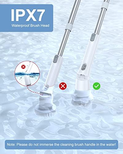 [𝐖𝐚𝐭𝐞𝐫𝐩𝐫𝐨𝐨𝐟 & 𝐖𝐢𝐝𝐞 𝐀𝐩𝐩𝐥𝐢𝐜𝐚𝐭𝐢𝐨𝐧𝐬] IPX7 waterproof ensures daily safe use of this electric scrubber, with no worry about splashes. Perfect for cleaning bathroom, shower, tub, toilet, sink, car, kitchen, grout, tile, etc. (Note: please do not immerse the cleaning brush handle in the water! )