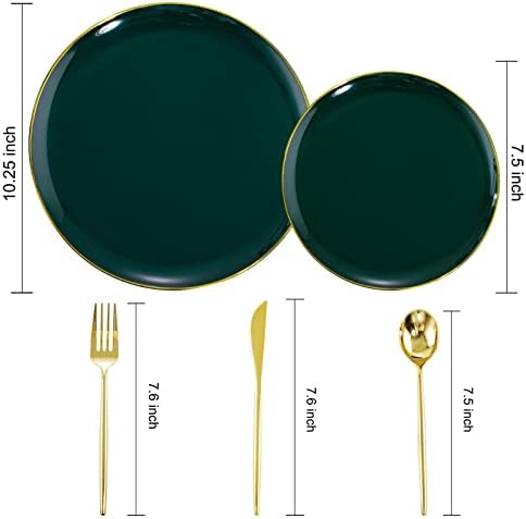 DESIGNED FOR ALL OCCASIONS: You can choose to use these disposable green plastic plates and gold silverware on any occasion. Through their embellishment, can make a monotonous table become more fashionable and style. The gold plastic plates and gold silverware set great for Green Party Decorations, Baby or Bridal Shower, Birthdays, Holidays, Home Dinners, Weddings, graduations and other parties.