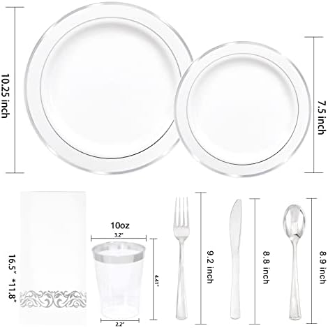 PERFECT FOR ANY OCCASIONS: The polished silver shine gives the plastic cutlery and disposable plates an upscale feel that is perfect for formal dinners, parties, wedding, banquets, and holiday as well as everyday meals, picnics and informal events.