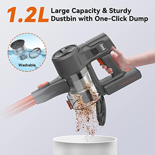 【1.2L Dust Bin with Mess-free Emptying】1.2L large capacity can contain plenty of dust which can reduce the frequency of emptying the dustbin. INSE S10 wireless vacuum’s dust bin uses not easy-to-crack integrated material and it is thicker and lasts longer than a regular vacuum. No need to touch the dirt, just press the release button