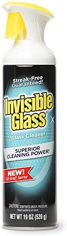 Invisible Glass 91160 Premium Glass Cleaner 19-Ounce Can Offers a formula contains no streaky soaps, scents, dyes, or other additives that leave behind hard-to-remove residues. Residues cling to glass surfaces forming streaks and attract dust and grime. Easily remove fingerprints, smudges, pet slobber, dirt, grease, and smoke haze on windows, mirrors, patio doors, glass cooktops, and other glass, mirrored, and chrome surfaces. Delivers a no-drip, fine-mist spray. Stop cleaning up after your glass cleaner. Clean better and less often with the formula of Invisible Glass.