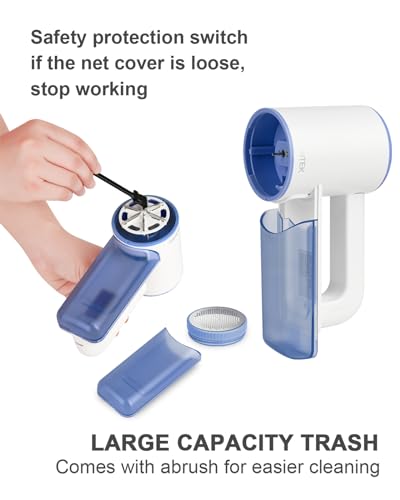 [LARGE GARBAGE BIN] – Compared with other lint remover devices, our sweater defuzzer have larger trash storage bins, so no need to worry about the lint shaver can’t work normally because of garbage backflow and blockage.