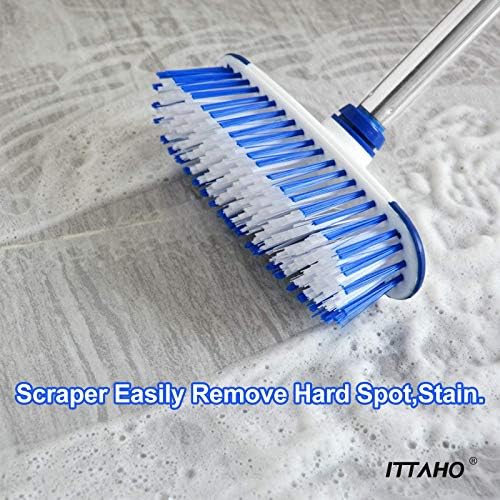 DURABLE LONG HANDLE & SCRAPER: The strong stainless steel handle can be removed and attached to the tile grout brush head easily, you can adjust handle length from 31″ to 51.8″. Easily scrubbing hard-to-reach areas, bathroom tile and floor without hurting your back and knees. The pole with threaded tip can be connected with other cleaning tools in your family.