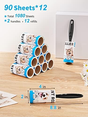 VALUE PACK: Our package includes 2 robust handles and 12 lint roller refills, providing you an incredible value. Each refill contains 90 sheets, giving you a total of 1080 sheets to ensure long-lasting performance and extended usability.