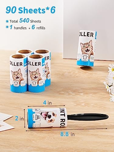 VALUE PACK: Our package includes 1 robust handles and 6 lint roller refills, providing you an incredible value. Each refill contains 90 sheets, giving you a total of 540 sheets to ensure long-lasting performance and extended usability.