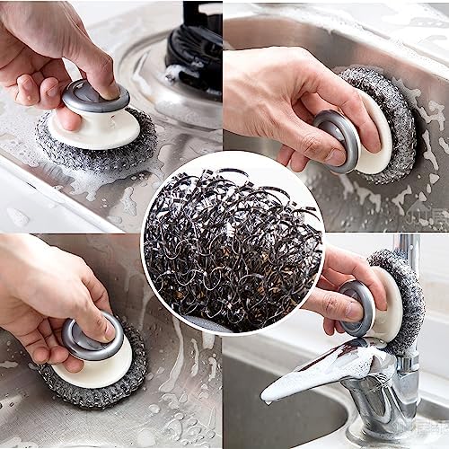 【Premium Material】 Made of tightly woven steel wire and plastic, our scrubbers are sturdy and won’t easily deform or loosen. They’re perfect for removing stubborn stains and grease, and will last you a long time.