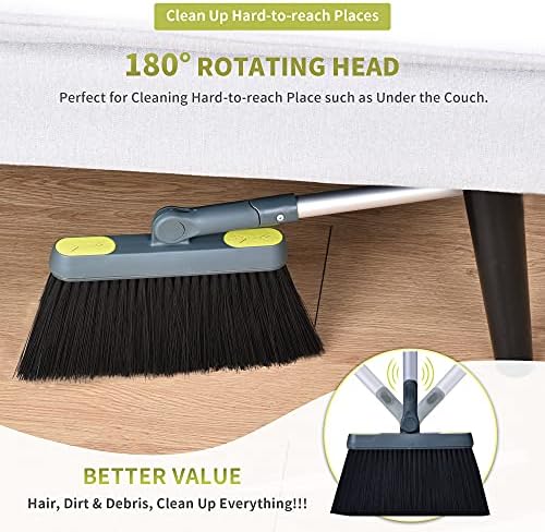 【No Bending Clean Up】The handle of the broom can be up to 54 inch in length, avoiding bending when sweeping the floor. You can use as many extension poles on the broom as necessary to reach high places.
