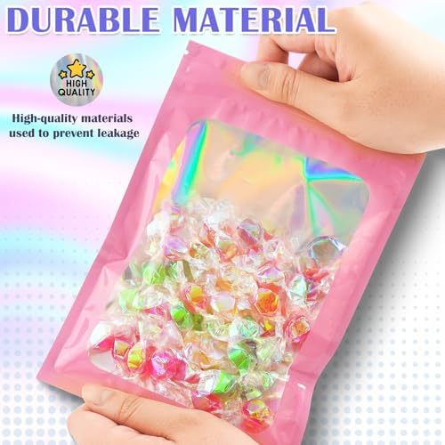 Versatile Use: These mylar bags with window are great for storing and packaging a wide range of products, including pens, snacks, candy, cookies, jewelry, bracelets, gifts, and more. Surely these packaging bags can be used as sample bags for small businesses.