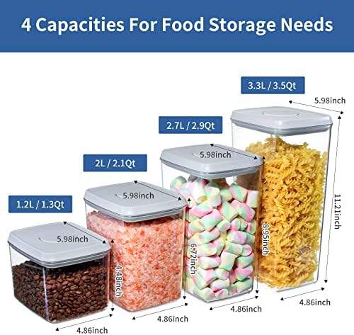 Versatile Storage Solutions: The food storage container set includes 4 containers in various sizes (1.3Qt, 2.1Qt, 2.9Qt, and 3.5Qt) to fit all your storage needs. Ideal for storing cereals, pasta, nuts, beans, snacks, and more.