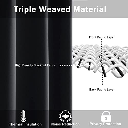 Heavy-duty and smooth, our soft blackout curtains are made of premium quality triple weaved microfiber blackout fabric, which effectively block most of the harmful sunlights and UV rays, protect your furniture, floors and valuables from the sun. Perfect for bedroom, living room, study room and so on.