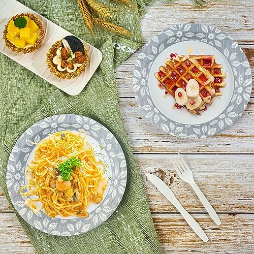 【Microwaveable & Premium Quality】Heavy duty Paper plates are microwave and freezer safe, They can be used for hot and cold food. cut-resistant and soak-proof, making it perfect for your food without worrying about spills and messes.