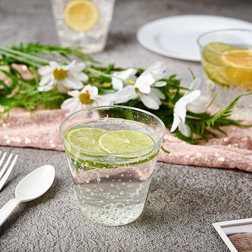 CONVENIENT LIFESTYLE: 100 10 oz heavy-duty plastic glasses . These disposable plastic cups will make your life easier and more comfortable. Save your time when you host a party or event, available for all your guests, It is recyclable and reusable.