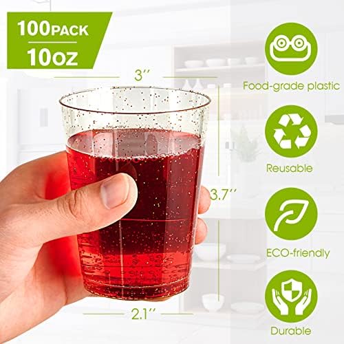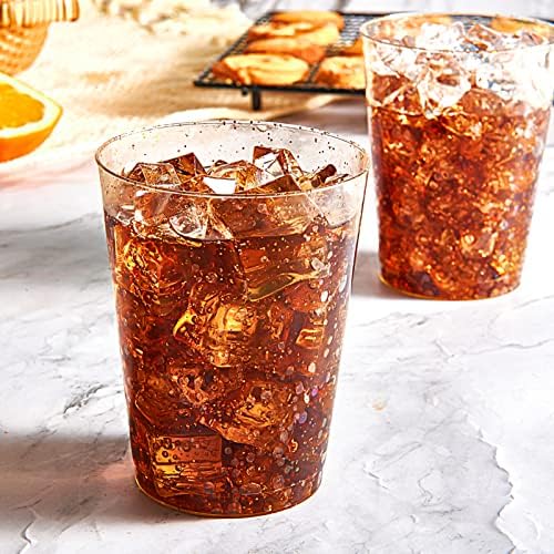 JOLLY CHEF 100 Pack 10 oz Gold Glitter Party Cups, Disposable Gold Glitter Plastic Cups Tumblers, Disposable Cups with Glitter Perfect for Wedding, Thanksgiving Day, Christmas Halloween Party Cups