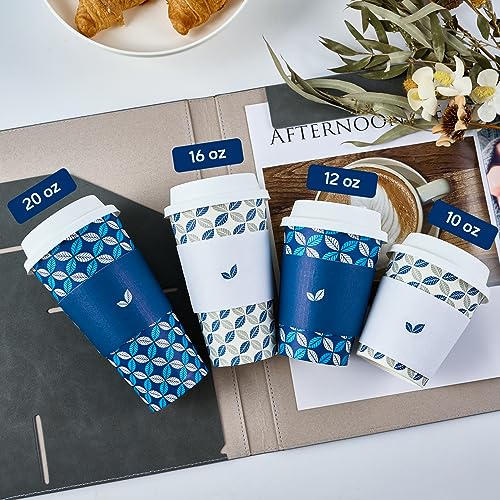 2.【Two-Color Set Design】Our printed disposable coffee cups are unique, the blue and grey leaf design like the symbol of our yearning for life and love for the future.Owing this can reduce inner irritability.