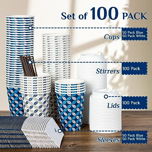 3.【Premium Quality】The paper cups are leak proof and durable,the coffee cup lid is tightly seal with the rim of the cup to help prevent leaks and spills,no worries for burning your hands.