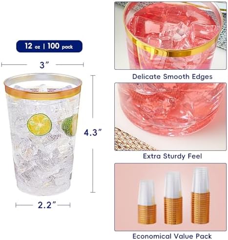 Clear and Durable Material: Our 12 oz disposable plastic cups are made of clear durable plastic material. These clear plastic cups are more suitable for daily parties, birthday parties and other occasions, without worrying about scratches or cracks.