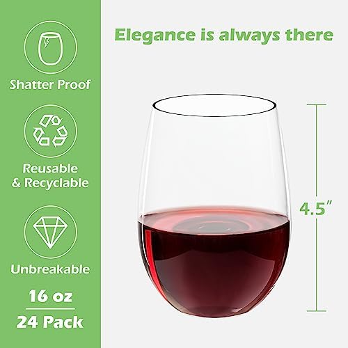 2【Premium Quality】 Our stemless plastic wine glasses are made of shatterproof, recyclable, BPA-Free materials,so you can use these clear plastic toasting glasses without any worries.
