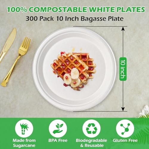 【Good Quality and Value Package】:The 10 inch 300 pack disposable plates are awesome value for your money,the size perfect for what you need and sturdiness for food you have planned.