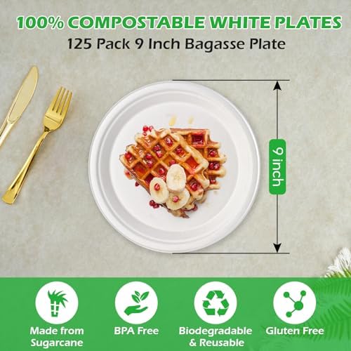 【Good Quality and Value Package】:The 9 inch 125 pack disposable plates are awesome value for your money,the size perfect for what you need and sturdiness for food you have planned.