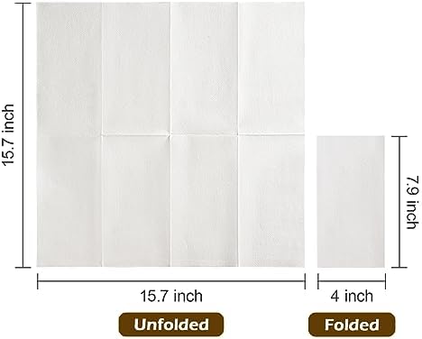 【Perfect Size】2 Ply disposable napkins are 15.7” x 13” when unfolded, and 7 .9” x 4.33” when folded. These disposable dinner napkins maximize your table’s space that are perfect for placing utensils.