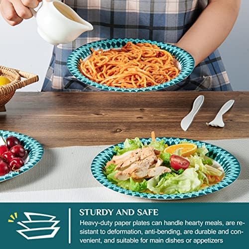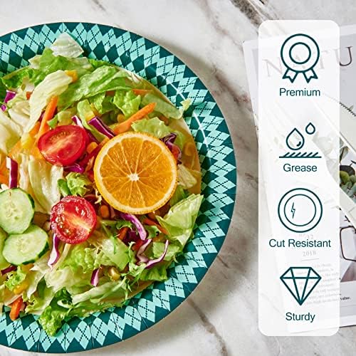 Everyday disposable paper plates Perfect for dinner parties summer picnics, decorative paper plates with bluish green pattern diamonds for a variety of themed parties and events