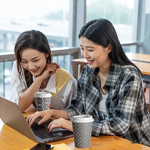 JOLLY PARTY Disposable Coffee Cups with Lids -12 oz (100 Sets) To Go Coffee Cups, Paper Coffee Cups for Beverages Espresso Tea, Suitable for Cafes, Offices and Home