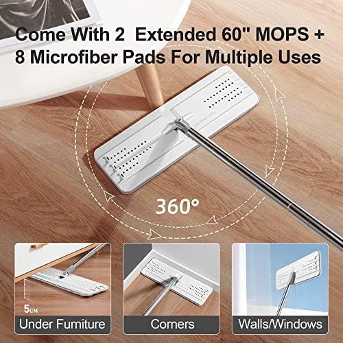 [TWO EXTENDED FLOOR MOP AND BUCKET] With 360° rotation and bigger mop head, it can reach to any corners, those “under-the-whatever” and more wider places for much faster cleaning job! The 2 adjustable Stainless Steel Handles can be extended from 26.5 to 60.0 inches, great for wet dry mops or dust mops for wall cleaning.