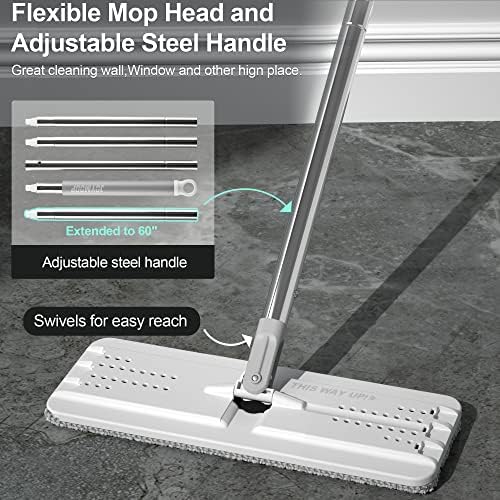 [MOPS FOR FLOOR CLEANING] 360° rotation flat mop-head can reach to any corners and those “under-the-whatever” places. The adjustable Stainless Steel Handle can be extended from 26.5 to 60.9 inches, much suitable to be a Wet Dry Mop for walls, Wall Cleaner with Long Handle.