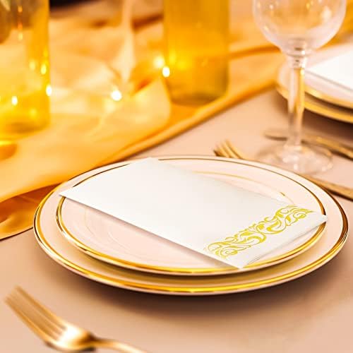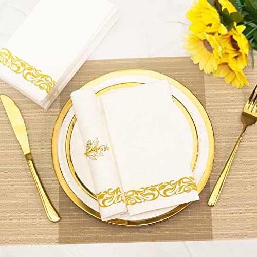 The disposable decorative napkins are printed with a delicate gold pattern, which add sophistication to formal occasion such as a wedding reception or anniversary party!