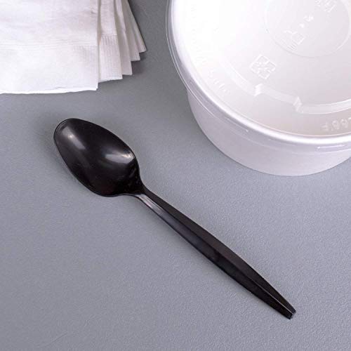Karat PP Medium Heavy Weight Tea Spoons Bulk Box – Black Karat medium-heavy weight teaspoons are ideal concession stands, cafes, or break rooms. Sold as a bulk box, containing one bag of 1, 000 spoons. These spoons are 5. 9” long . Black color, made from medium-heavy weight polypropylene. A cost-effective solution for any take-out business.