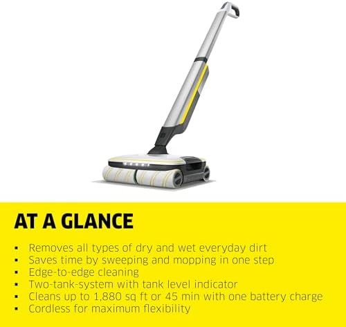 The Karcher Promise – Cleaner. Quicker: This multi-surface floor cleaner directly picks up dirt, small debris, and hair, all while mopping your floors. Cleaned floors dry within 2 minutes due to the minimal amount of cleaning solution being used