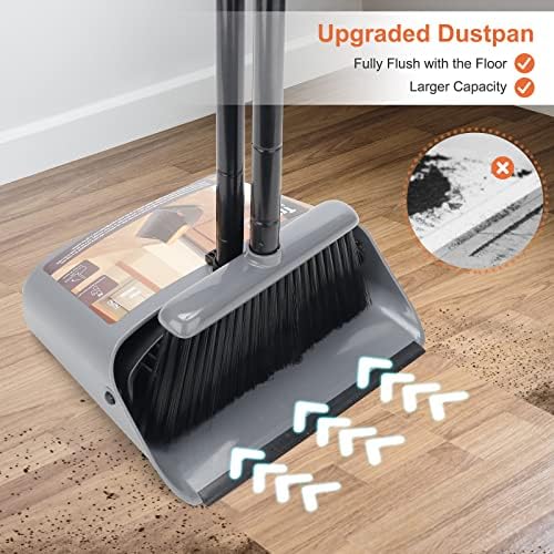 🏡Dustpan’s Flexible Rubber Lip: dustpan and brush set build in rubber lip can flush with the floor and conforms to clean all garbage and debris into dustpan, won’t swept underneath dust pan and broom combo. Recogedor de basura para casa/ house heavy duty kitchen brooms for sweeping indoor outdoorindoor