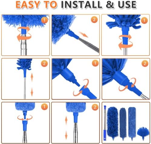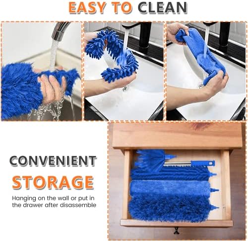 Washable & Detachable — Just slide the head off the telescopic wand, hand wash with warm or low heat water!(Place in ventilated place to dry.) Instead of tossing cheap dusters constantly, you get to reuse the duster over and over again, saving time, money, and the environment.