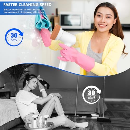 【Multi-Purpose Brush Heads】The shower spin scrubber comes with 5 brush heads to meet your different cleaning needs. Use scouring brush to make floors, tiles, dishes and stoves look like new again. Use corner brush and flat brush for baseboards, door frame with deep grout. Sponge brush are great for cleaning glass and metal without scratching. And shower cleaner brush can be used for bathroom and bathtub cleaning.