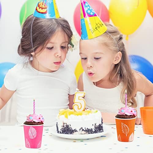 UNIQUE DESIGN: Colorful disposable paper cups with bright and cheery leaves shape patterns. 4 different colors come in the package. They are very great for homes, parties, companies, and other occasions.