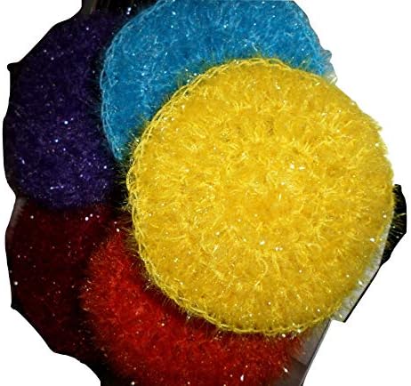 Made in the USA Handmade Nylon Netting HANDMADE Pot SCRUBBIES…Lasts Longer than Scrubbers you buy in Store! Approximately 4 in.to 5 in. wide and 1 in. thick. The exact size is determined by the quality of the sparkle nylon which sometimes varies slightly. It will do more than wash the dishes or skin exfoliator. Clean the potatoes, cucumbers, too. Lint from your clothes makes look like new; Clean frost from the windshield, bugs and their juices. Use your imagination to find other uses; Don’t forget your tires and barbeque grill.