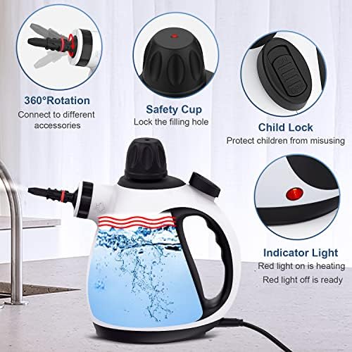 🌱Chemical Free & Safe: Handheld upholstery steamer 100%chemical-free with no harmful fumes or residue. Includes a safety lock on the handle and a safety cap for added peace of mind for your safety. It can be used with confidence around children and pets.