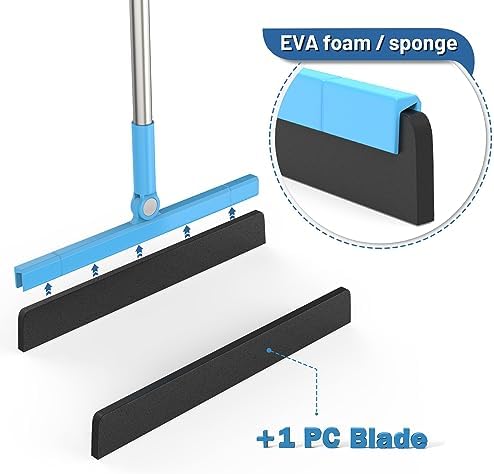 Easy to assemble. Washable foam squeegee blade. Floor squeegee with 58″ long handle that is long enough for your daily use.