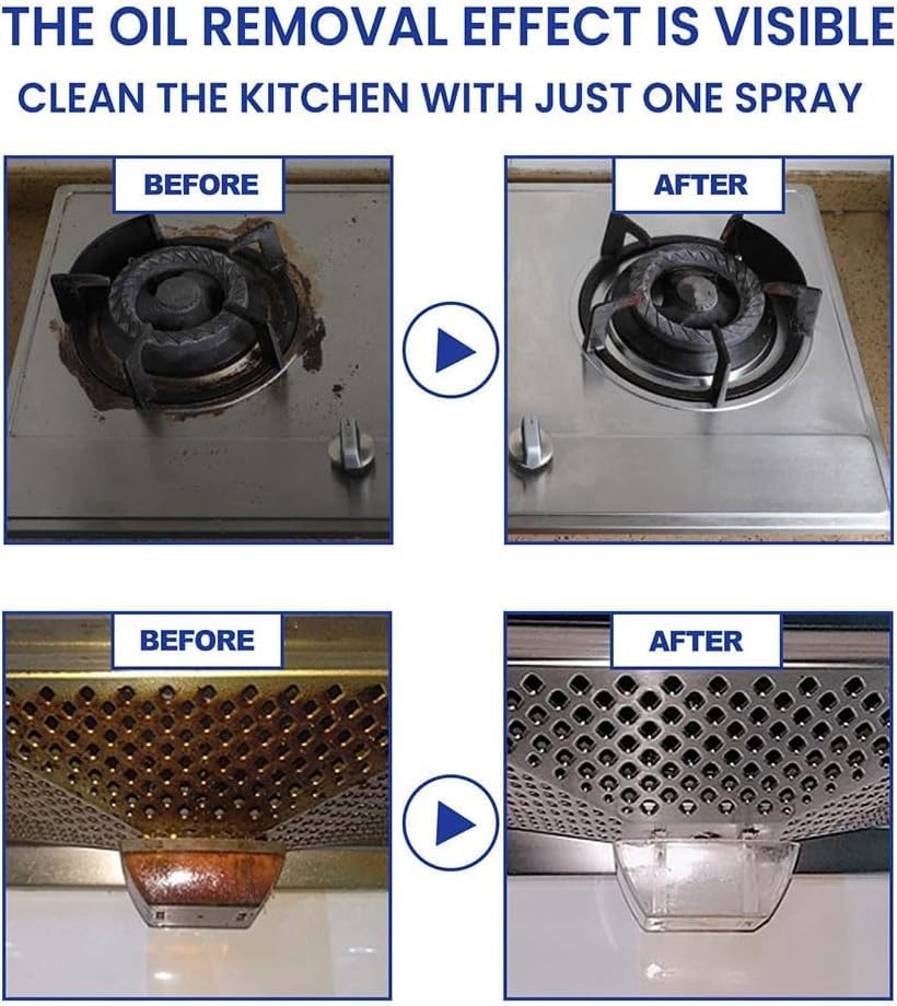 【Multi-Purpose】This foaming cleaner can be used on a variety of surfaces including stainless steel, range hoods, floors, glass and tiles. Not only suitable for kitchens, but also for car interiors and bathrooms.