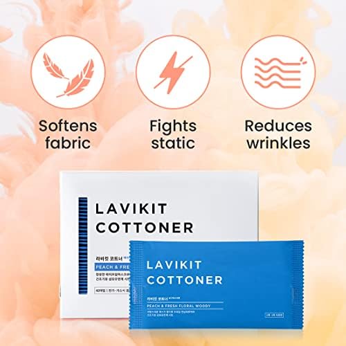 [PEACH & FRESH FLORAL WOODY SCENT] Wash your laundry with matching scents in La vikit Laundry cottoner, liquid fabric softener, and scent Peach and Fresh Floral Woody then add dryer sheets to the dryer to keep your laundry smelling amazing even after six weeks.