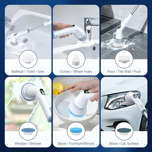 ADJUSTABLE & DETACHABLE TELESCOPIC POLE: The labigo spin scrubber feature stainless steel handles with 7-speed telescoping from 39.37 inches to 47.63 inches, easily clean hard-to-reach places and say goodbye to traditional cleaning tool bondage. The pole can be removed to transform the brush into a handheld power brush, allowing you to do both.