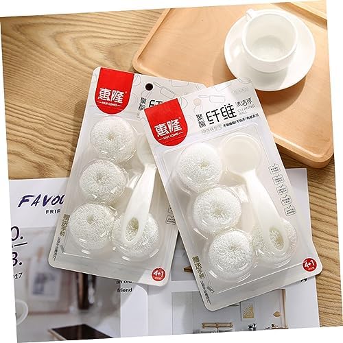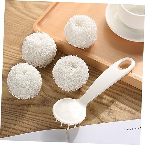 1Set Fiber Dish Washing Ball (4 Fiber Ball and 1 Long Handle)