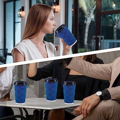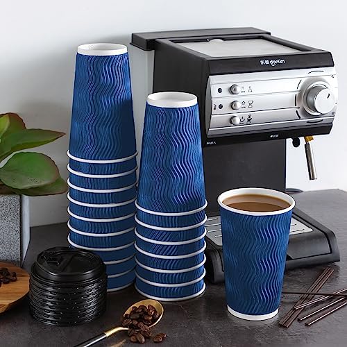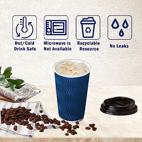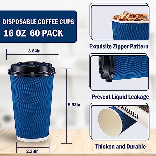 Lamosi 16 oz Coffee Cups-60 Pack Disposable Coffee Cups with Lids and Straws, To Go Paper Coffee cups for Cold/Hot Coffee, Water or Juice, Coffee Cups for Home, Office, Store and Cafe(Navy)