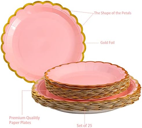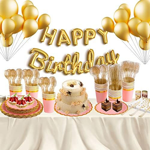 【Elegant Gold Decorative Border Pattern】: The pink background and gold decorative border pattern add dimension to your parties. The transparent gold plastic cutlery adds a modern touch to any party. Perfect for party.