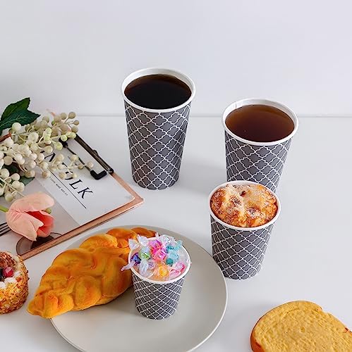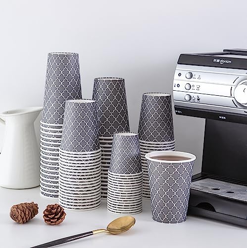 【Premium Paper Cups】This package contains 180 count 12oz disposable coffee cups, Classic grey coffee cups printed with unique patterns. Suitable for any use, such as home, office, restaurant, event hosting.