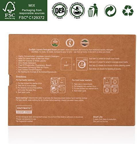 [ZERO MESS, ZERO WASTE] Say goodbye to single-use plastic jugs that pollute our landfills and oceans. ecoSpin laundry detergent sheets are powered by plants, organic, recyclable and septic safe