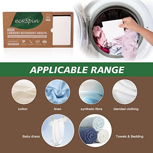 [APPLICABLE RANGE] ecoSpin laundry detergent sheets are ideal for cotton, all colors cloths including white color, linen, synthetic fiber, blended clothing, baby cloths, undergarments
